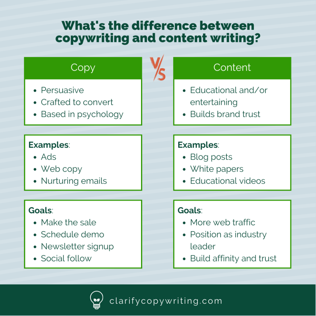 So, what’s the difference between copywriting and content writing – and how does it affect your decision when hiring a writer?